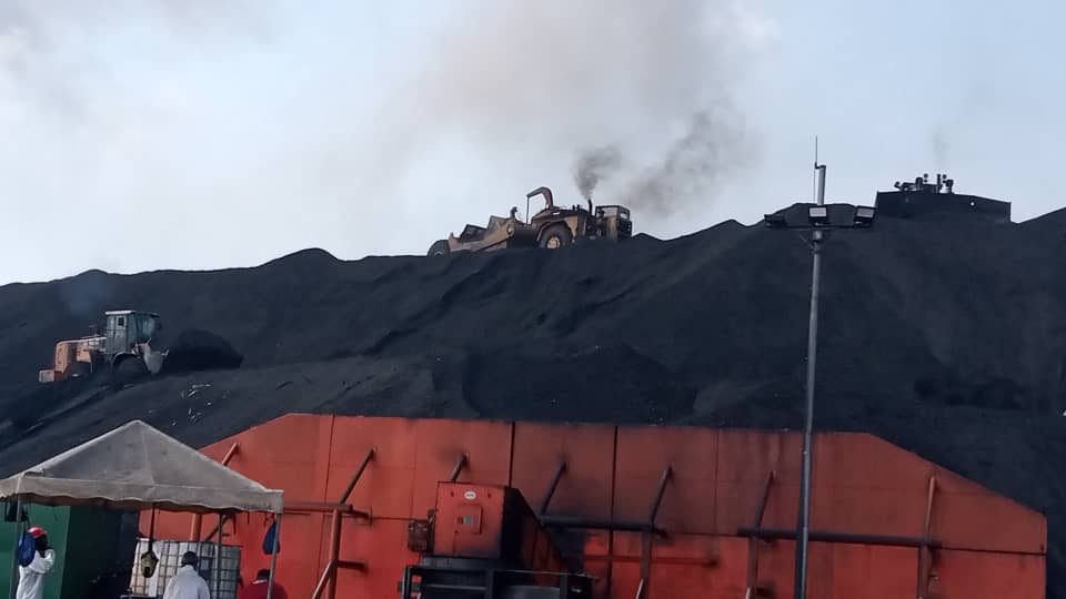 Servicio de transporte de carga y descarga de PETCOKE, almacenado, en el patio interno 1 en Petro San Felix,